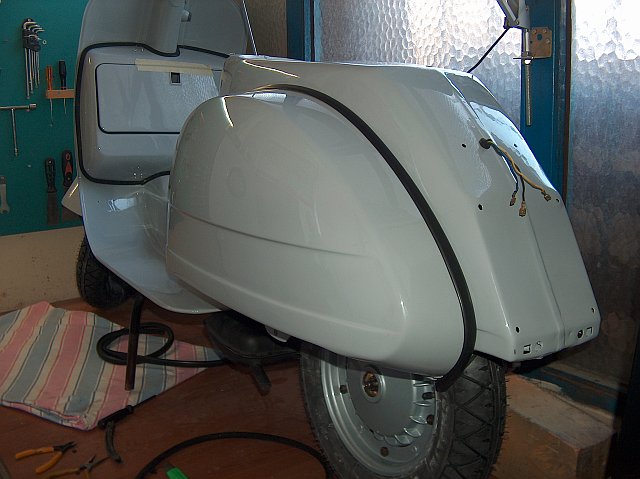 Bu haftanın en önemli gelişmesi Vespa’mızın şasisi ile motorunun evlenmesi oldu elbette. Uzun zamandır beklediğim bir andı ve sevgili Nahit ile Özgür’ün de yardımlarıyla çabucak birleştirdik. Üzerine keyif kahvesi içip seyrettim. Ardından torpido gözü ve arka çamurlukların contalama işlemlerine giriştim. Kolay gibi görünen bu işlem özellikle torpido gözünde uzun sürmekte. Elbette bu çalışmayı yaparken boyanın çizilme ihtimali olması sebebiyle yavaş ve dikkatli davranmak gerekmekte.