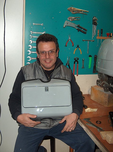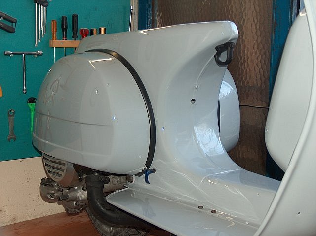 Yine onun yardımıyla aynı problemi çok kolay çözdük. Çıtamız nefis bir şekilde yerine oturdu. Ardından orijinal Vespa logomuzu da yerine perçinledikten sonra (o da Nahit’in elinden çıktı), söktüklerimizi yeniden monte ettik.