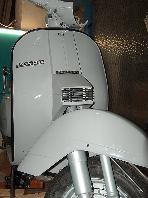 Henüz gümrükten çekilemeyen orta sepanın yerine eskisini geçici olarak takıp Vespa yı ayağa kaldırdım. Ön yürüyüş takımını test amaçlı çamurluğu olmadan monte ettim.