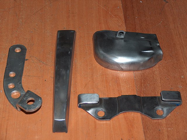 Arka fren pedalının temizliği yapılmamıştı. Yılların çamur ve yağ karışımı temizlendiğinde (sonrasında döner fırça ile polisaj da yapıldı) hoş bir görüntü oluştu. Hazır el atmışken yakın zamanda statik boya atölyesinde işlem görecek, üzerlerindeki pas ve eski boya kalıntılarının temizliğini yaptım. Bir kaç tane daha var, motor ilk çalışmayı yaptıktan sonra topluca siyah renk ile kaplanacaklar. Statik boya hem çok dayanıklı, hem de en fazla bir gün sonra hazır olmakta ancak boyanacak yüzeylerin metal ve temiz olması gereklidir.