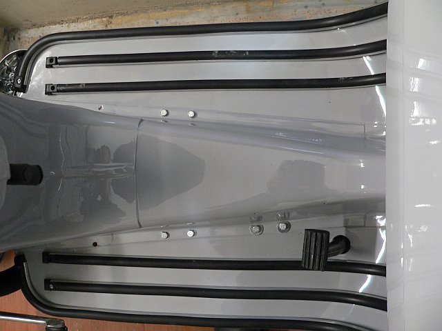 Sonrasında taban çıtalarına geçtim. Öncelikle tabanımız, kaporta işlemleri esnasında değişmiş olduğundan altı adet çıta için fabrika orijinali delikler yoktu. Bunlar yeniden delinecekler. Geçtiğimiz haftalarda boya atölyesine gidip delinme işlemlerinden sonra ileride paslanma sorunu olmasın diye Hakan usta’dan bir miktar epoksi aldım. Matkap çalışmalarından ve alıştırmalardan sonra küçük bir resim fırçasıyla tatbik edip, kuruduktan sonra montaj yapabileceğim. Bazı yerlerin çizilmemesi için kağıt bant ile korumaya aldım. Bir miktar ön çalışma ve işaretleme sonrası artık yorulduğum için elim hassasiyetini kaybetti, yanlış bir yere delik açmamak için paydos ettim.