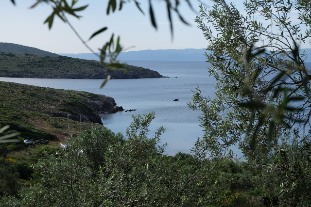 İlerleyen saatlerde evvelce duyduğumuz Patricia Koyu’na keşfe çıkalım dedik. Bu güne kadar Cunda’ya gelip de hiç geçmediğimiz yerlerdi. Muhteşem zeytinliklerin arasından tozlu, taşlı, hatta yol bile denmeyecek yerlerden ilerleyerek Ayışığı Manastırı’na kadar ilerledik. Manastır gün itibarı ile ziyarete kapalıydı. Yaz sezonunda Salı ve Çarşamba günleri 10:00 – 15:00 arası ziyarete açıkmış.