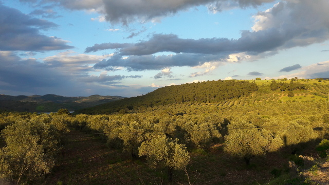 Edremite doğru akşam üzeri ışığında tabiat bize harıka pozlar veriyor. Zaman zaman fotoğraf çekmekten ilerleyemez oluyoruz. Yeşil, yağış sonrası capcanlı.