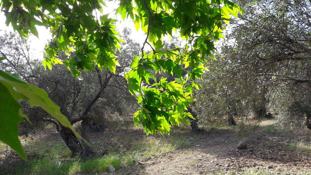Zeytinliklerin içinde bir çınar ağacı.