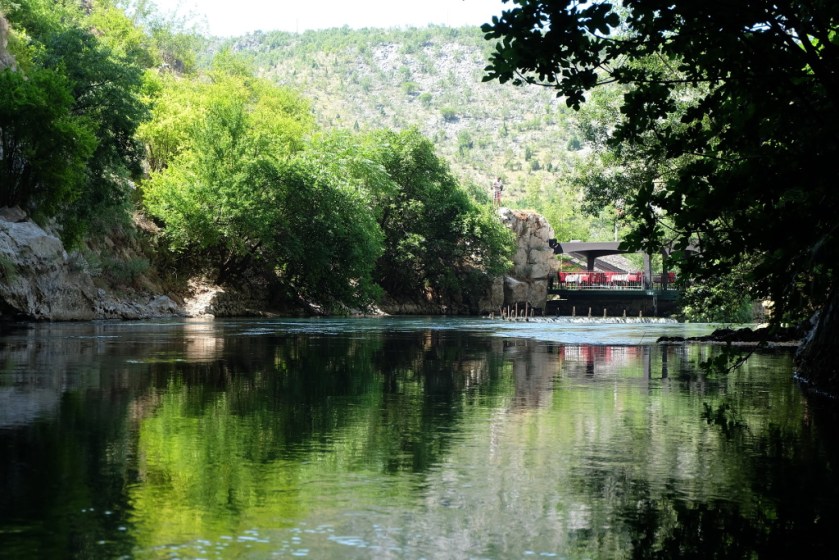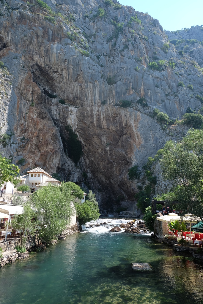 Bu sabah ilk önce Buna nehrinin kaynağındaki Blagaj Tekke’yi ziyarete gittim. Dik ve içeri girintili kaya yamaçların dibinde, görülesi bir kaynak. Aynı zamanda dini detayları da olduğu için güzel korunmuş, etrafı iyi düzenlenmiş.