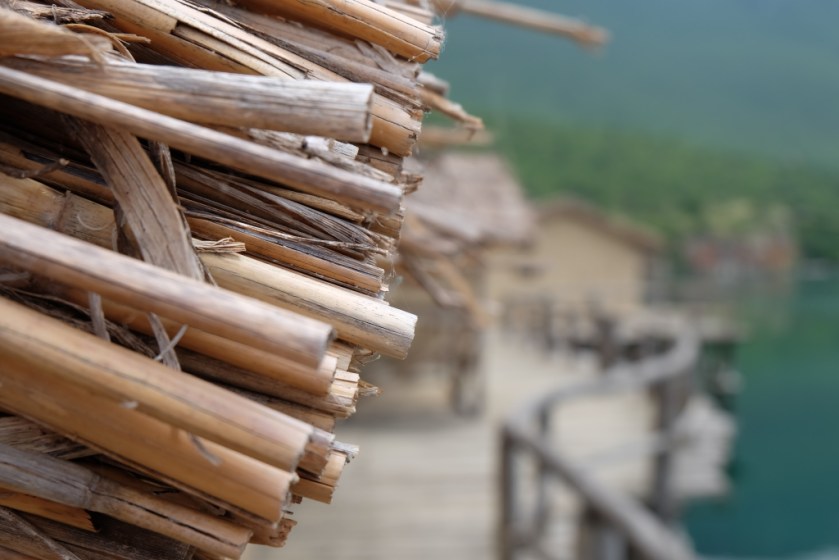 Dünden yol yorgunluğunu atamadım. Bir de etrafı gezmek için günü Ohrid’de geçirmeye karar verdim. İlk iş su üzerindeki müzeyi ziyaret etmek oldu. Nerede diye araştırma yaparken konakladığım kampın 300 m ilerisinde olduğunu fark edip yürüyerek ulaştım. İlginç bir müze; bölgenin tarihi MÖ 1700 – 600 yıllarını kapsıyormuş. Bakır, Bronz ve Demir çağını kapsıyor. Müzenin su üzerine kurulmasının sebei, bulunduğu yerde suyun altında bulunan kalıntılar. O çağlarda da aynı şekilde su üzerinde yaşamışlar.