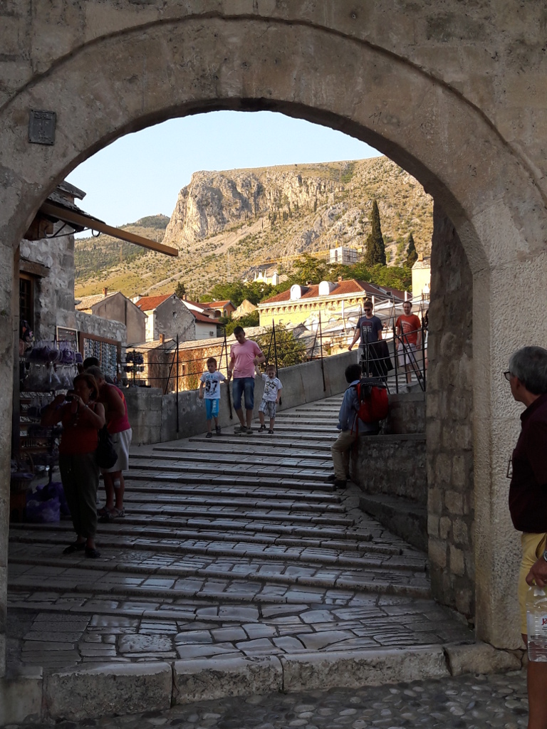 Tarihi Mostar köprüsünün olduğu eski bölgeyi ziyarete gittim. Binalar güzel restore edilmiş, tertemiz. Küçük dükkanlar, çalışanların güler yüzü görülmeğe değer. Ancak bu bölge biraz fazla “turistik” kokuyor. Eh, olacak bu kadar elbette. Nihayetinde turizm bölge için önemli bir gelir kapısı. Gayet normal.