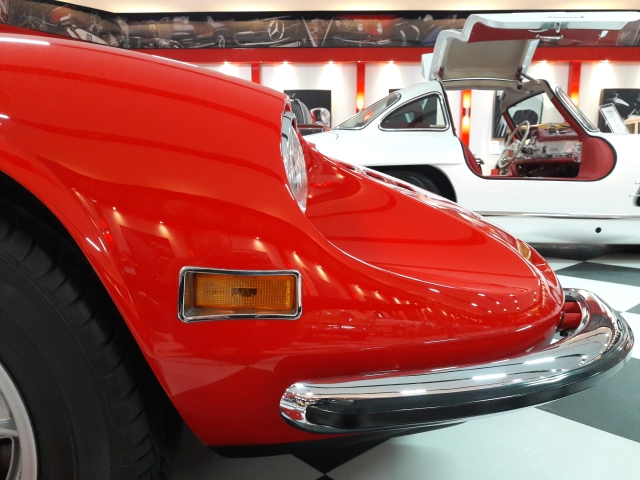 Müzede sergilenmekte olan araçlar kadar, hatta belki de onlardan öte bir durumu fark ettim; bu otomobil ve motosikletlerin restorasyon kalitesinin yüksekliği. Detayları seyretmekten kendimi alamadım. Bu türlü konularda takıntılıyımdır, geçtiğimiz yıllarda iki adet Vespa restorasyonu yaptığım için (Örn: Kırmızı Vespa’ya Sadakat) doğru düzgün restorasyonun zorluklarını, sıkıntılarını bilirim. Elbette araçların içine girme şansım olmadı veya motor havuzlarını göremedim ama kaportalarındaki uyum, orijinal kalıplarına ve ölçülerine sadakat, boya işçilikleri, hele renkler, takdiri hak ediyor. Öğrendiğim kadarı ile restorasyon çalışmaları için kendi ekipleri bulunmakta.