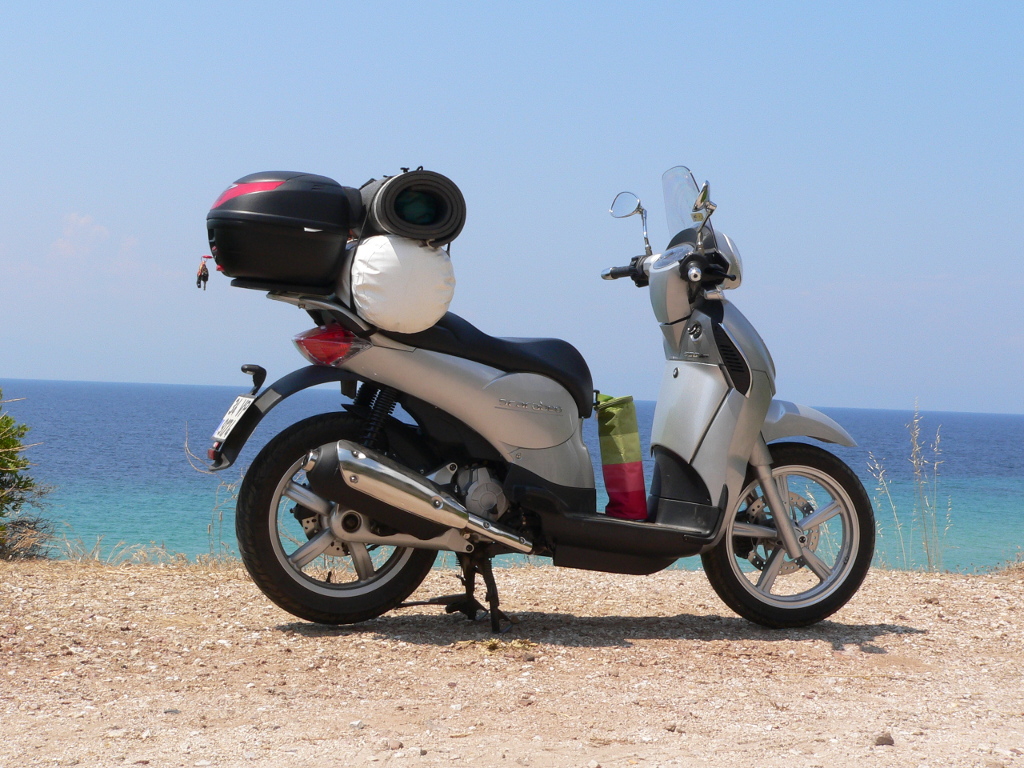 Temmuz 2014’de, yanıma kamp malzemelerimi aldığım gibi Thassos‘a gittim. Harika bir yolculuktu. Adanın kimi bozuk yollarında, hatta sert kum yüzeylerde gezdim. Yakıt tüketimi de gayet düşüktü. Çaplı ve etli lastikleri sayesinde virajlar ayrı bir keyif olmuştu.