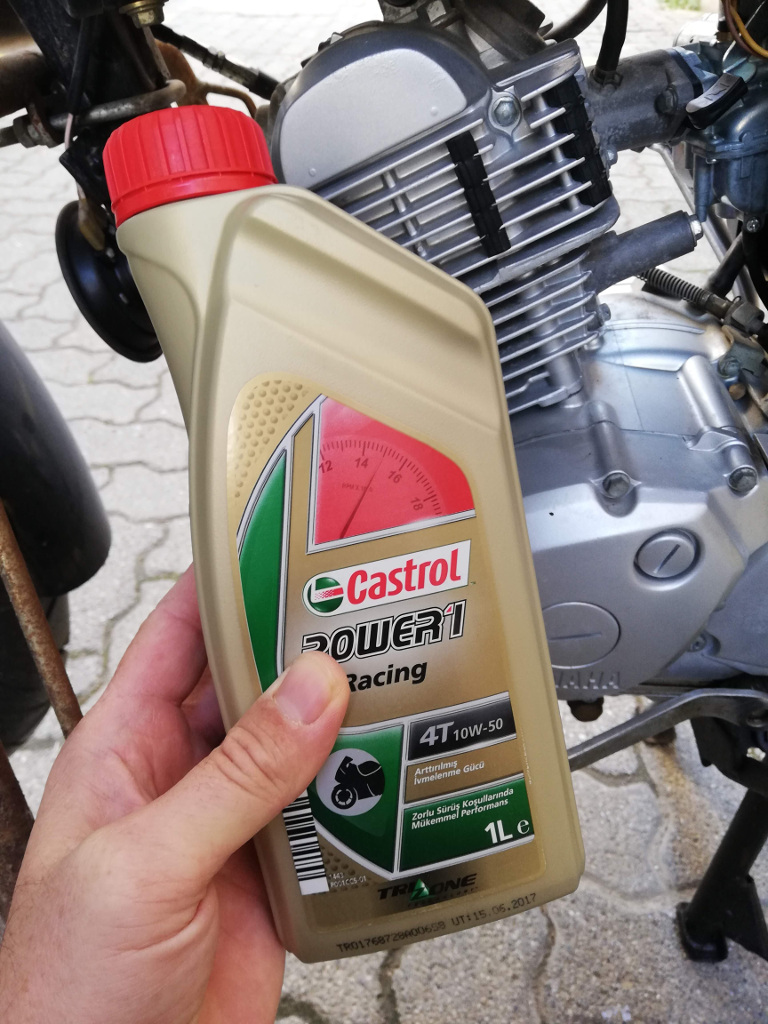 Hali hazırda hem Çekirge (XT660Z) hem de Kiraz (YBR125) için Motul 7100 serisi 15W-50 yağ kullanmaktayım, 4 litrelik ambalaj ekonomik olup iki motosiklete de hemen hemen aynı takvimde yeterli gelmekte. Siyah YBR için sadece 1 litre yağ ihtiyacı doğduğundan evvelce kullandığım Castrol Power 1 Racing 10W-50 tam sentettik yağ satın aldım. Uzun yıllar kullandım ve memnun kaldım. Yine bunu tercih ettim, biraz da Motul ile kıyaslama yapmak istiyorum. Şayet istediğim neticeyi alabilirsem kendi motosikletlerimde de buna geçmeyi planlıyorum. Şu aralar iki marka arasındaki fiyat farkı hayli açıldı.