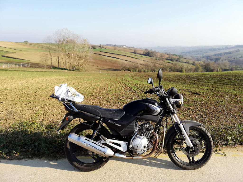 Tamam, yapacak bir şey yok, usulca yola devam edeceğiz. Bu arada arka frenin mükemmel çalıştığını fark ettim, kampana fren candır, eskimez, bozulmaz kolay kolay, en çok öter tozluysa. Seviyorum bu YBR’leri.