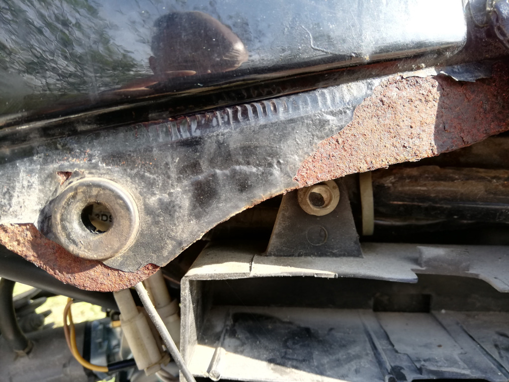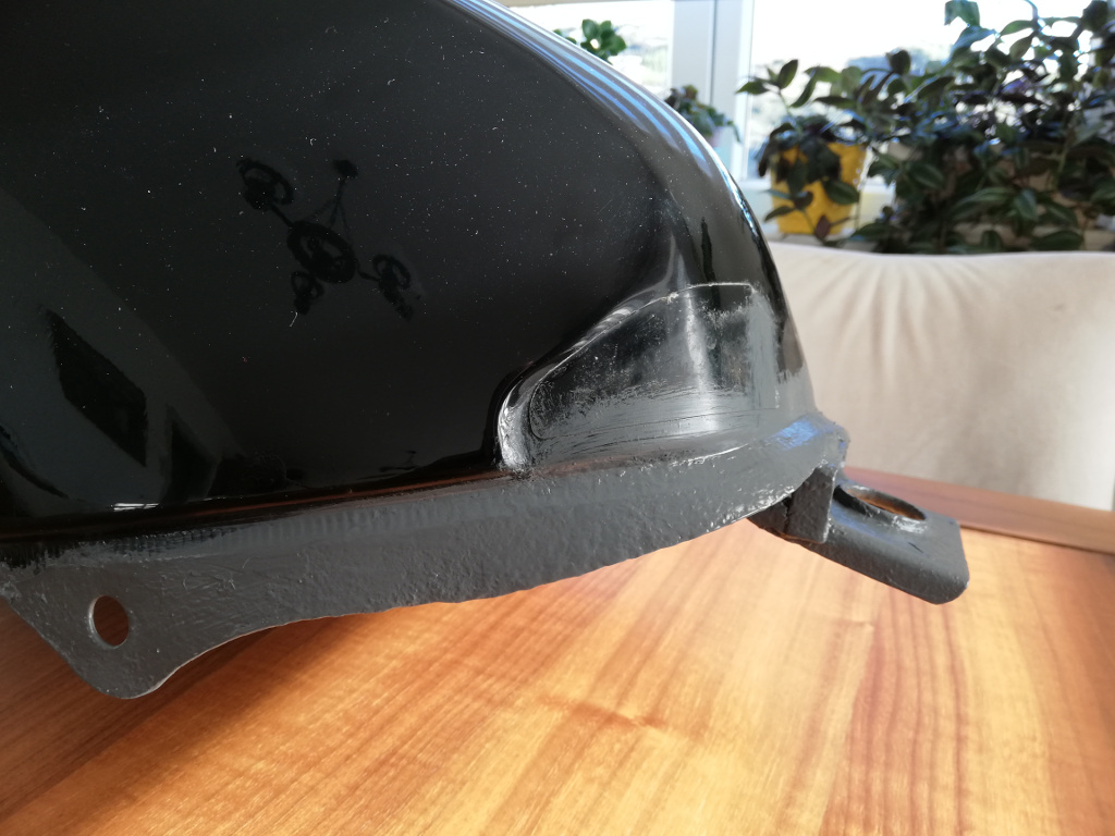 Benzin deposunun alt tarafı temiz ancak arka dip tarafı hayli kötü durumda. Boya kabuk kabuk kalkmakta. Şasi üzerinde de pas var ama çok hafif ve kolay tamir edilebilir durumda. Ancak deponun durumu ciddi.