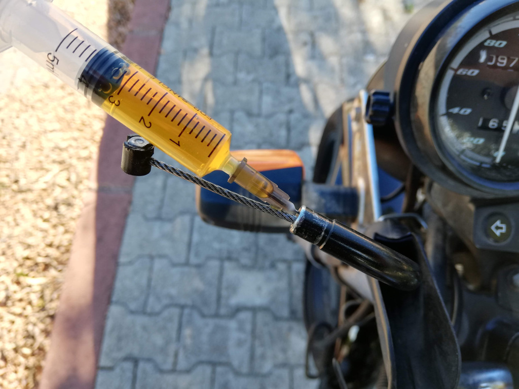 Bir enjektör yardımı hareketli tellere motor yağı enjekte ettim. Bu işlemi senede bir kez yapmak malzemenin ömrünü uzatırken kullanım konforunu da arttırmakta.