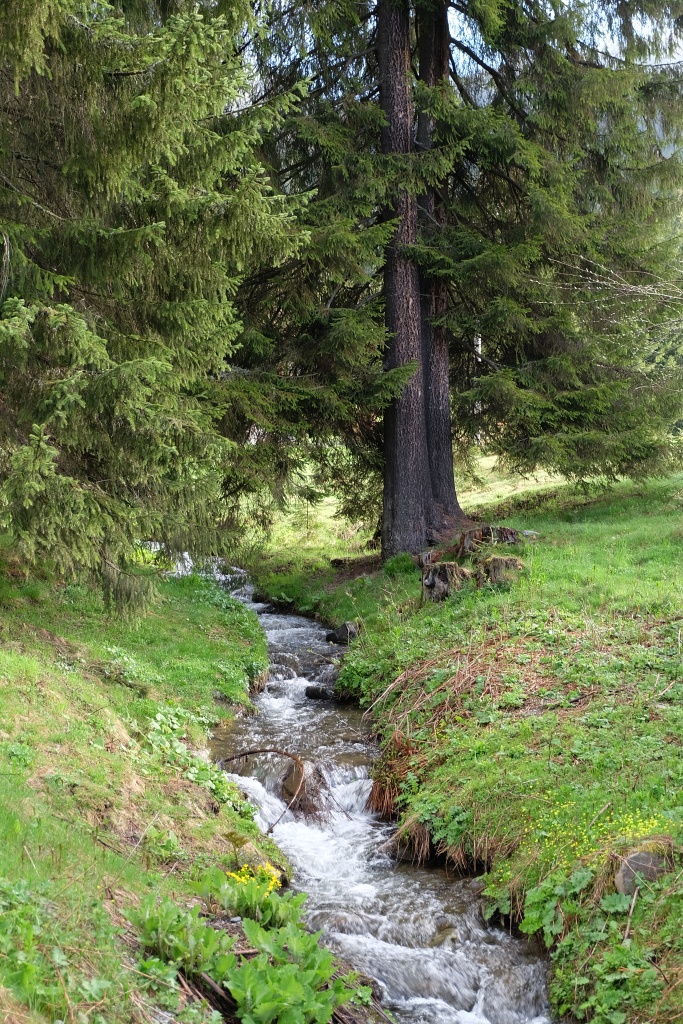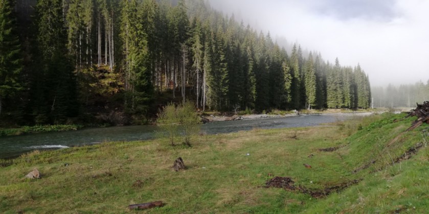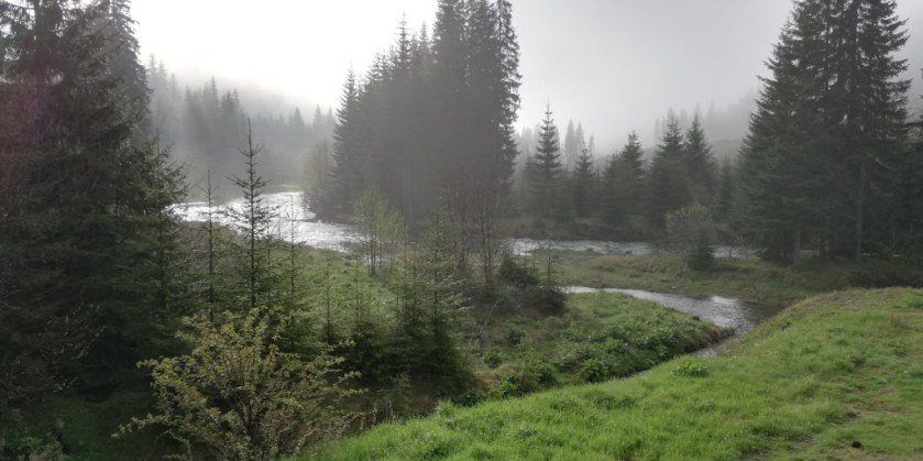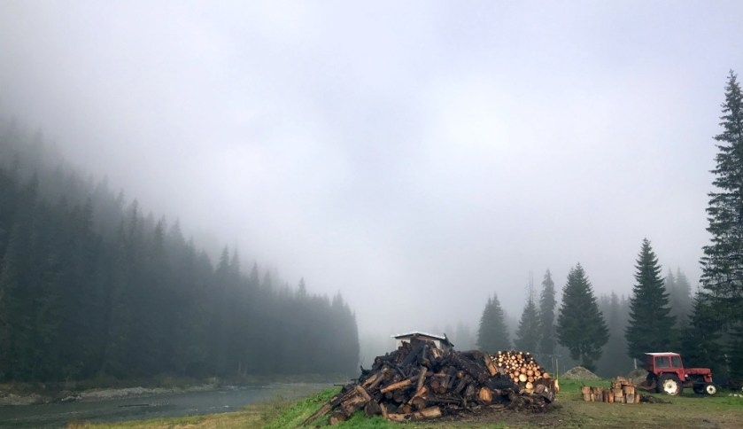 Sabah pırıl pırıl bir güne uyanıyoruz. Kuş sesleri, kocaman ağaçlar, eski bir traktör, sabah oldu diye kendini paralayan horoz bey, gece boyunca yağmurla kim daha çok ses çıkaracak diye yarışan çılgın nehir, dağların üzerindeki sis, taze kesilmiş odunlar, bizimle tur atan köpecikler. Kısaca enfes.