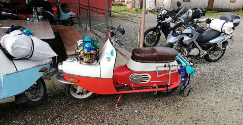 Toplam üç Cezeta ve iki Jawa’dan oluşan beş kişilik Çek gezgin ekip pek konuşkan değildi ne yazık ki. O nedenle uzun uzadıya sohbet etme şansımız olmasa da eve döndükten sonra Cezeta konusunda kısa bir araştırma yapıp, gerçekten var olduklarına ikna olduk 🙂 Ama her halükarda, o kadar küçük motor hacmi, o kadar küçük tekerlekler ve o kadar değişik! yükle Transalpina geçişi yapan bu ekibe saygı duymamak elde değil doğrusu.