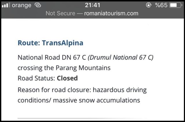 TransAlpina için bizce en uygun yer Obârşia Lotrului demiştik. Transalpina (DN 67C) güneyde Novaci’den, kuzeyde Sebeş’e uzanan bir geçit yolu. Aslında planımız “bizce” keyifli kısımların başladığı Ramca – Sebeş arasını geçmekti. Ancak kar nedeniyle Ramca tarafı kapalı. O nedenle Obârşia Lotrului – Sebeş şeklinde ilerliyor olacağız. Bu tip dağ geçitleri çoğunlukla kar, buz nedeniyle kapalı olup, sadece sıcak yaz aylarında ulaşıma açılıyor. O nedenle bahtımızda ne varsa şeklinde ilerliyor olacağız. Yol durumu duyurularını kontrol ettiğimiz romaniatourism.com sitesinden baktığımızda yol açık görünüyor. Ancak hava şartları sürekli değiştiğinden, sitede yazan ile pratik durum arasında epeyi fark olabiliyor. Kaldı ki, kimi köylüler Sebeş’e giden geçidin yer yer kapalı olduğuna dair bilgiler aktarıyorlar. Eğer bu geçidi kullanamazsak “normal” yollara dönmemiz gerekecek. Ya Petroşani üzerinden (150 km.) ya da Sibiu üzerinden (200 km.) Sebeş’e gitmemiz gerekecek. Ama her iki durumda da Transalpina geçişini yapamamış olacağız. Kafalarımız iyice karışıyor. Her işte bir hayır vardır diyerek, oluruna bırakıyor ve dolaptan kendi aldığımız içeceklerimizi yudumluyoruz.