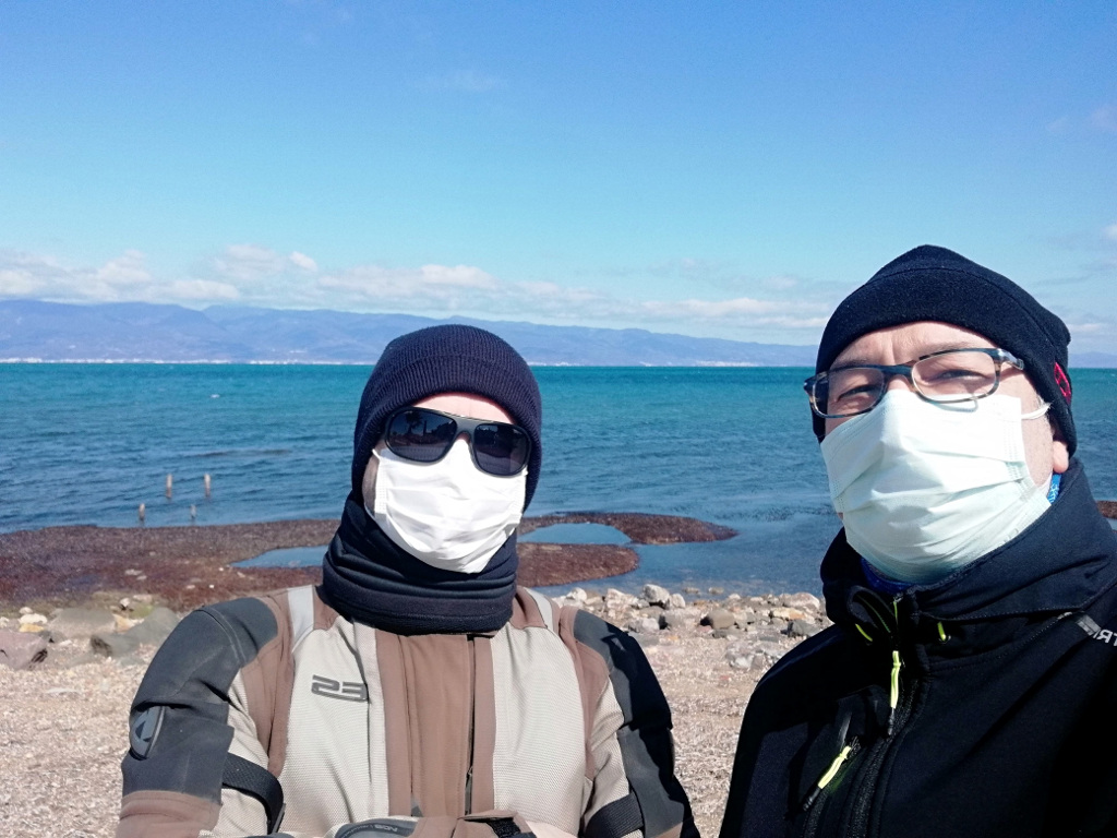 Gökçeyazı’ya gelmeden sis bastırıyor. Keskin soğuğa şimdi bir de sis eklendi. Görüş çok az, yerler ıslak. Ertuğrul’un lastikleri dişli (Hero, Metzeler Enduro 3 Sahara ile geliyor) asfaltta tutuşu bana kıyasla çok daha az. Dolayısıyla çok daha tedbirli ve temkinli sürüyor. Ben görece daha rahatım (Metzeler Tourance Next tamamıyla asfalt özellikli). Balıkesir civarı sis kalkıyor. Ama hava aynı soğuklukta. Yola sık sık mola vererek devam ediyoruz. Amaç, enerji almak ve vücut ısısının düşmesine engel olmak.