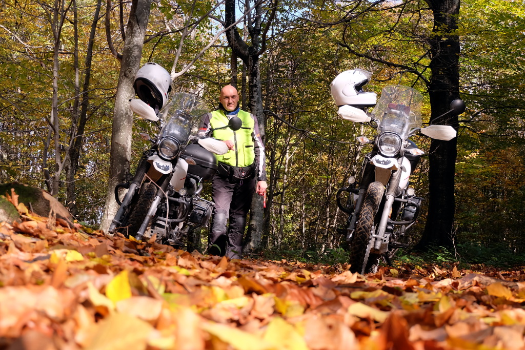 Özgür geçmiş yıllarda off-road sporunu 4×4 araçlar ile hayli derinlemesine yaptığı için artık toz-toprak-çamur pek ilgisini çekmiyor. Her ne kadar kulllanmakta olduğu 2008 model BMW F650 GS “enduro” geometrisinde olsa da, aslında bir “funduro” dur, asfalt ağırlıklı bir araçtır. Bunun yanında sahip olduğu Yamaha YBR125 (Mavi) ve doğru lastik ile bu rotada ilerleyebilir. Yavaş olur, hoplar, zıplar, ama ilerler, lakin Özgür’ün hiç hevesi yok bu yollarda.