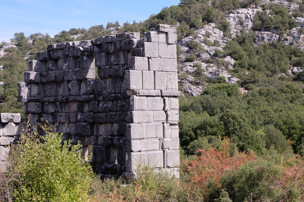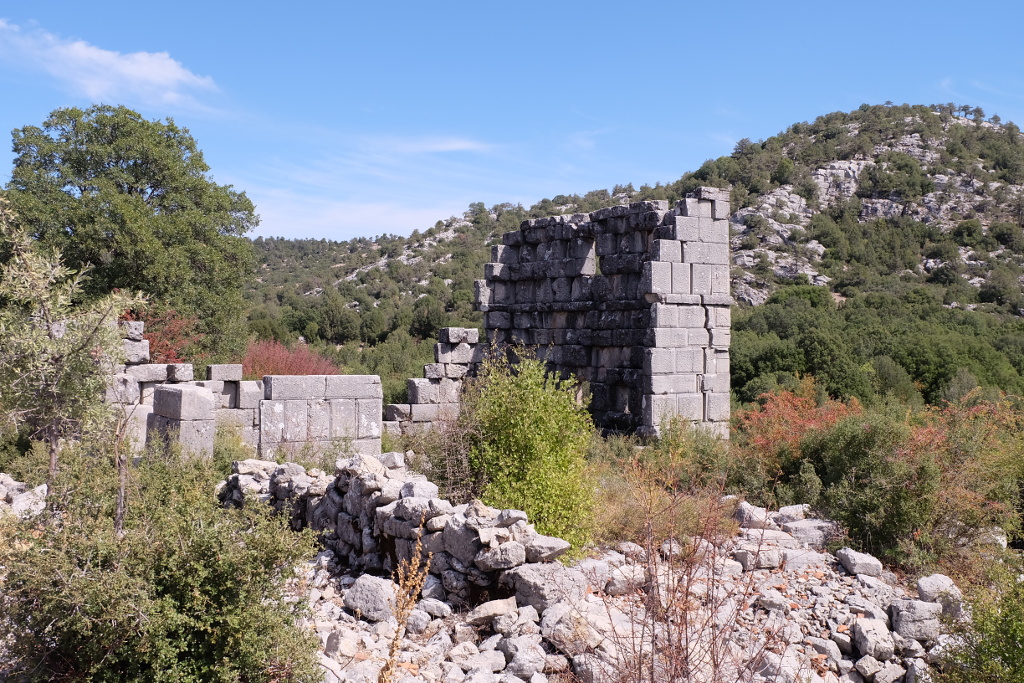 Virajlı, sakin yollarda ilerlemeye devam ediyoruz. Karadiken ve Sağrak’ı geçince yolun sağından geriye doğru Adada antik kenti kalıntılarını görmek için sapıyoruz. Dağlık bir bölgede kurulduğu için hayli sağlam kalmış olan, yaklaşık 2.200 yıllık kentin günümüze kadar gelmiş kalıntıları arasında dolaşmak heyecan vericiydi.
