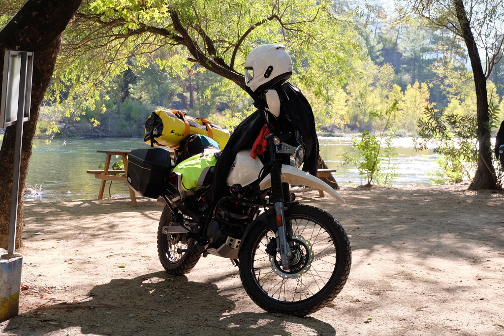 Kamptan ayrılıca kimi yol inşaatı, kimi toprak yüzeyli ama trafiği bol ve dar yoldan Serik yakınlarında Mersin-Antalya yoluna indik. Asıl ızdırap burada başlıyor. Yoğun ve hızlı akan düzensiz trafik Antalya’yı geçene kadar bezdirdi, en nihayetinde Beldibi hizasında rahatladık. İstikametimiz Lazona Camping, Adrasan.