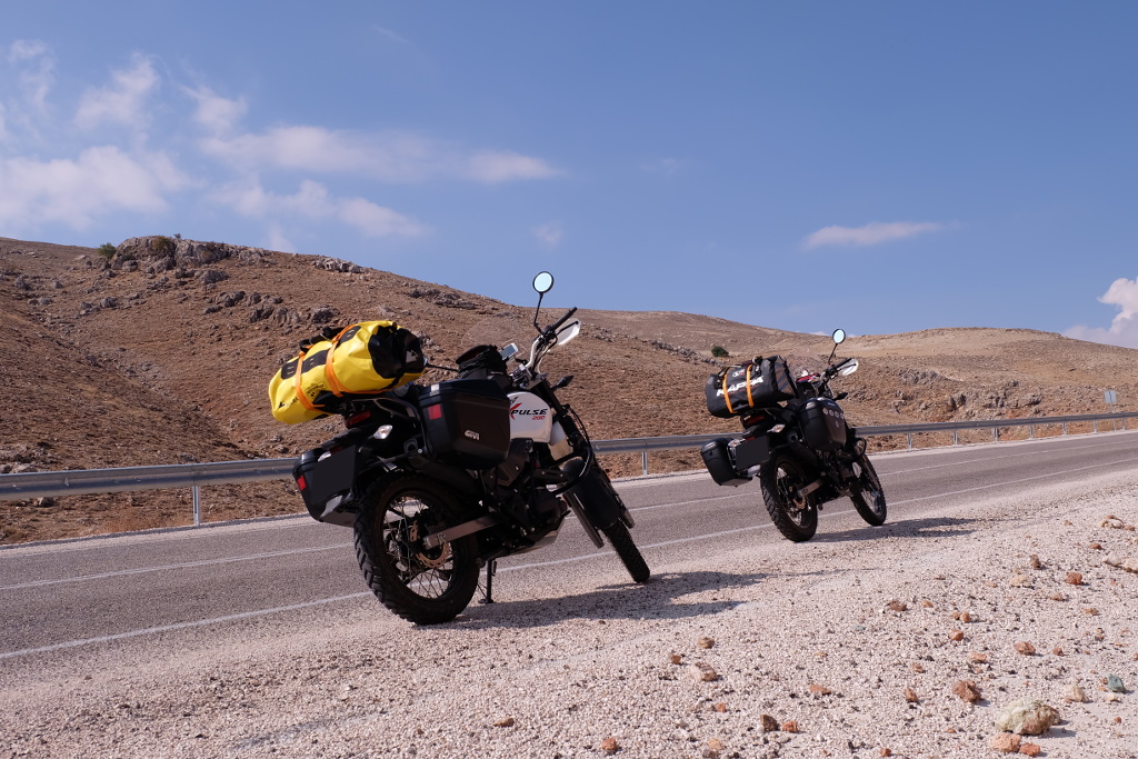 Bu yolculuktaki yük dağılımını yan çantalar vasıtasıyla daha düzgün hazırladık. Elimizde mevcut bulunan Kappa K21 ve Givi E22 plastik çantalar hacim olarak kafi geldi ancak, önümüzdeki zaman içinde kumaş yapı ile değiştireceğiz. Özellikle off-road rotalarda şayet makineleri yatırırsak, kırılmaları söz konusu olmadığından, soft çanta elbette daha avantajlı olacaktır.