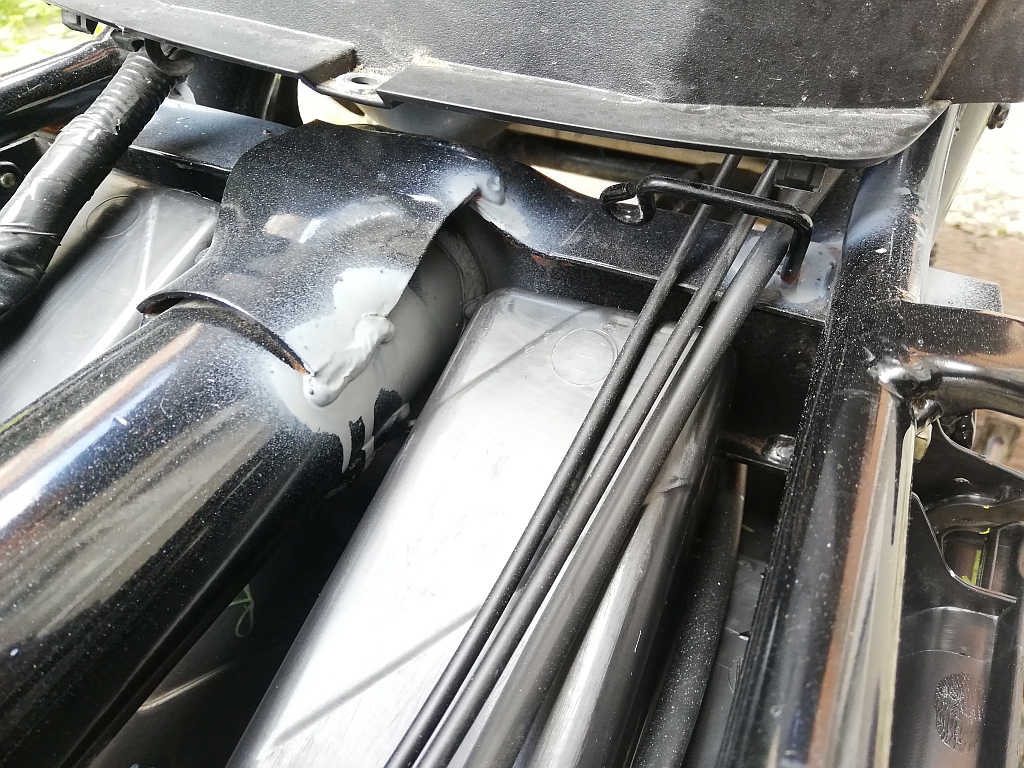 – Sele altı, benzin depo kapağı, km sayacı, ön ve arka frenleri kontrol eden çelik kordonların geçiş yerlerini düzelttim. Hemen hepsi gelişi güzel monte edilmişti.