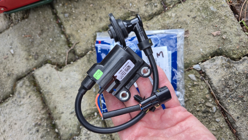 Elimde bulunan yeni bobin setini taktım, problemin biteceğini düşünüyorum, çünkü eski bobinin piposu ve kablo contaları dökülmeye başlamış. Muhtemelen içeri rutubet alıp elektrik iletiminde sorun çıkartıyordu.
